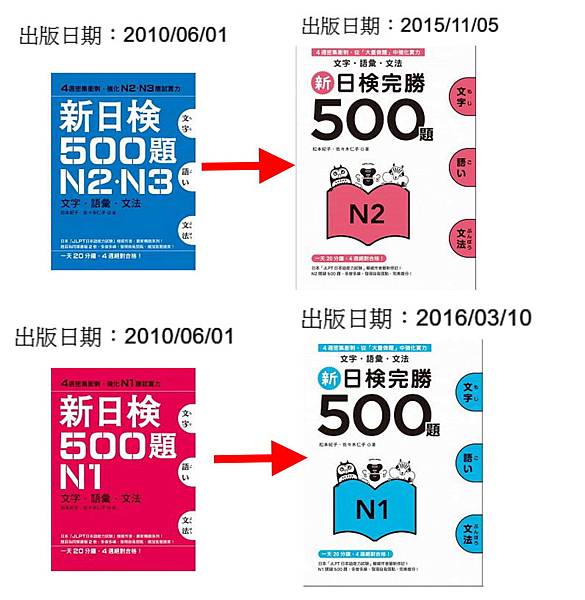 ↓然後這個是全世界都推的(N2N3小藍本只要有考N2的應該人手一本XD),他改版了,所以我買了右下角的N1,500題