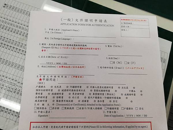 至「台北駐大阪経済文化弁事処」填寫「文件證明申請表」(因為我在大阪)