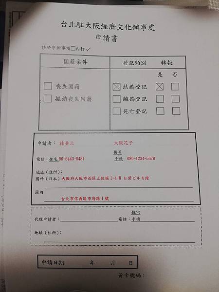 文件證明申請表(申請用途寫:結婚登記)